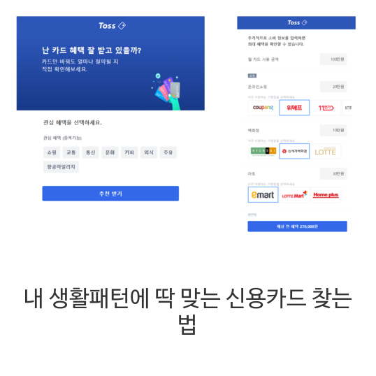 그런데 토스에서는 내 소비패턴을 바탕으로 딱 맞는 맞춤형 카드를 추천받을 수 있더라고요!